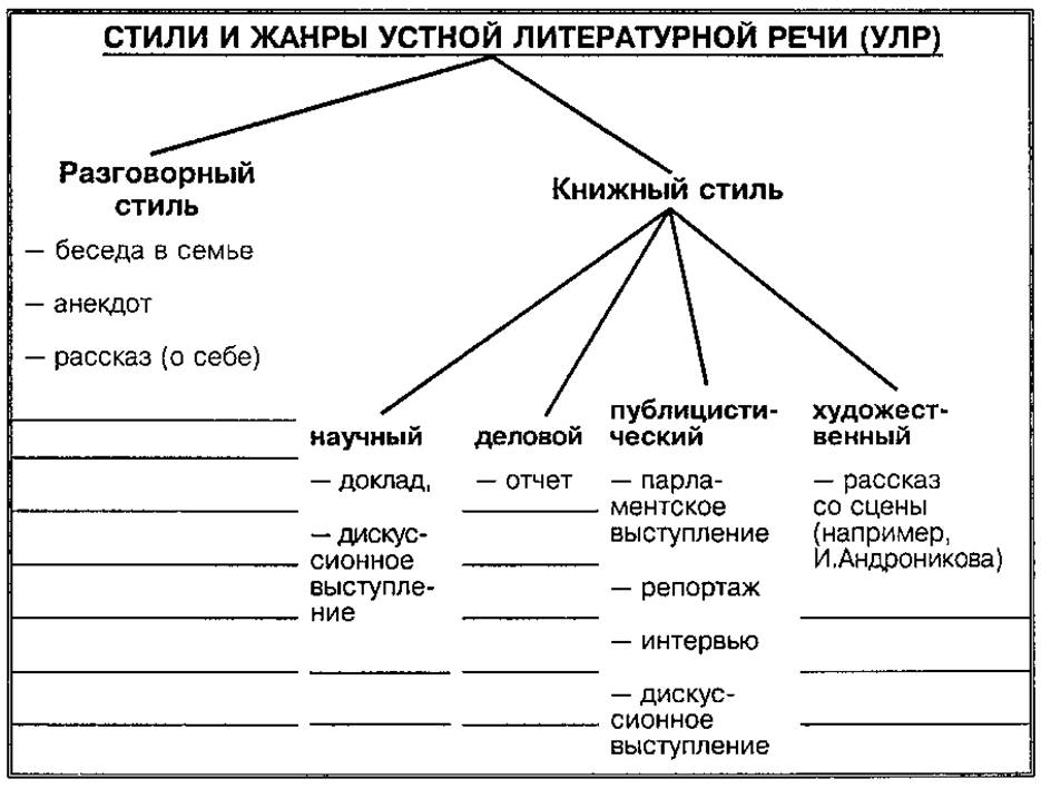 2. Какие из указанных устных жанров особенно значимы для вашей будущей профессиональной деятельности? Подчеркните их названия. Допишите наименования тех устных жанров, которые вы хотели бы включить в схему.