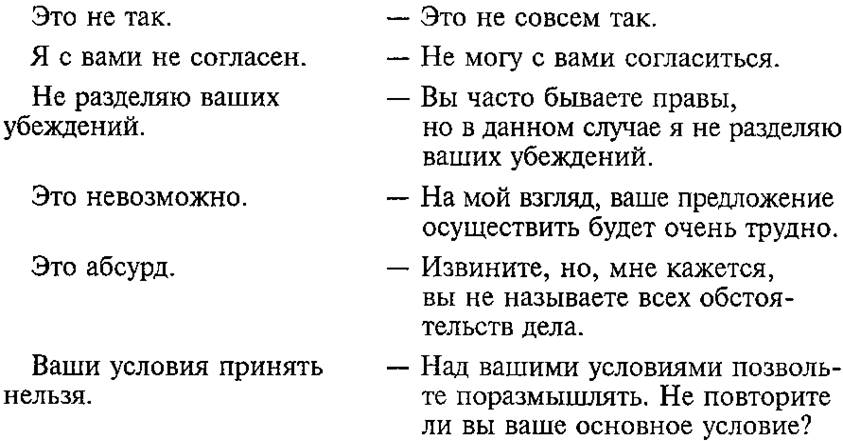 ② Сравните два варианта возражения. Какой из этих способов выражения несогласия вежливее? Объясните почему. Прочитайте подходящим тоном оба варианта.