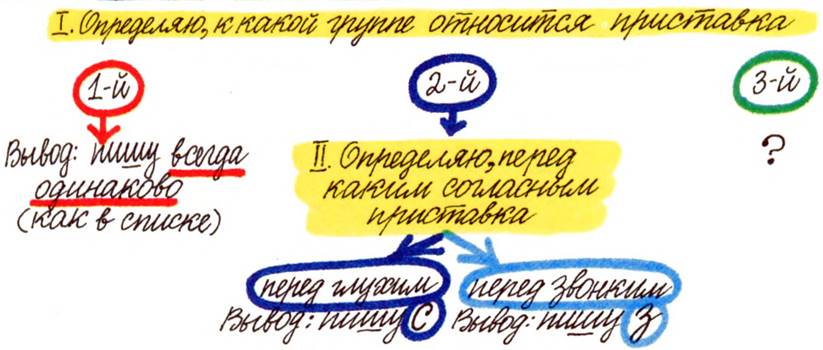 Глядя на приставки второй группы, малышка с- чувствует себя их родственницей и изо всех сил хочет писаться так же, как они. Давайте еще раз напомним ей ее обязанность - никогда не изменяться.